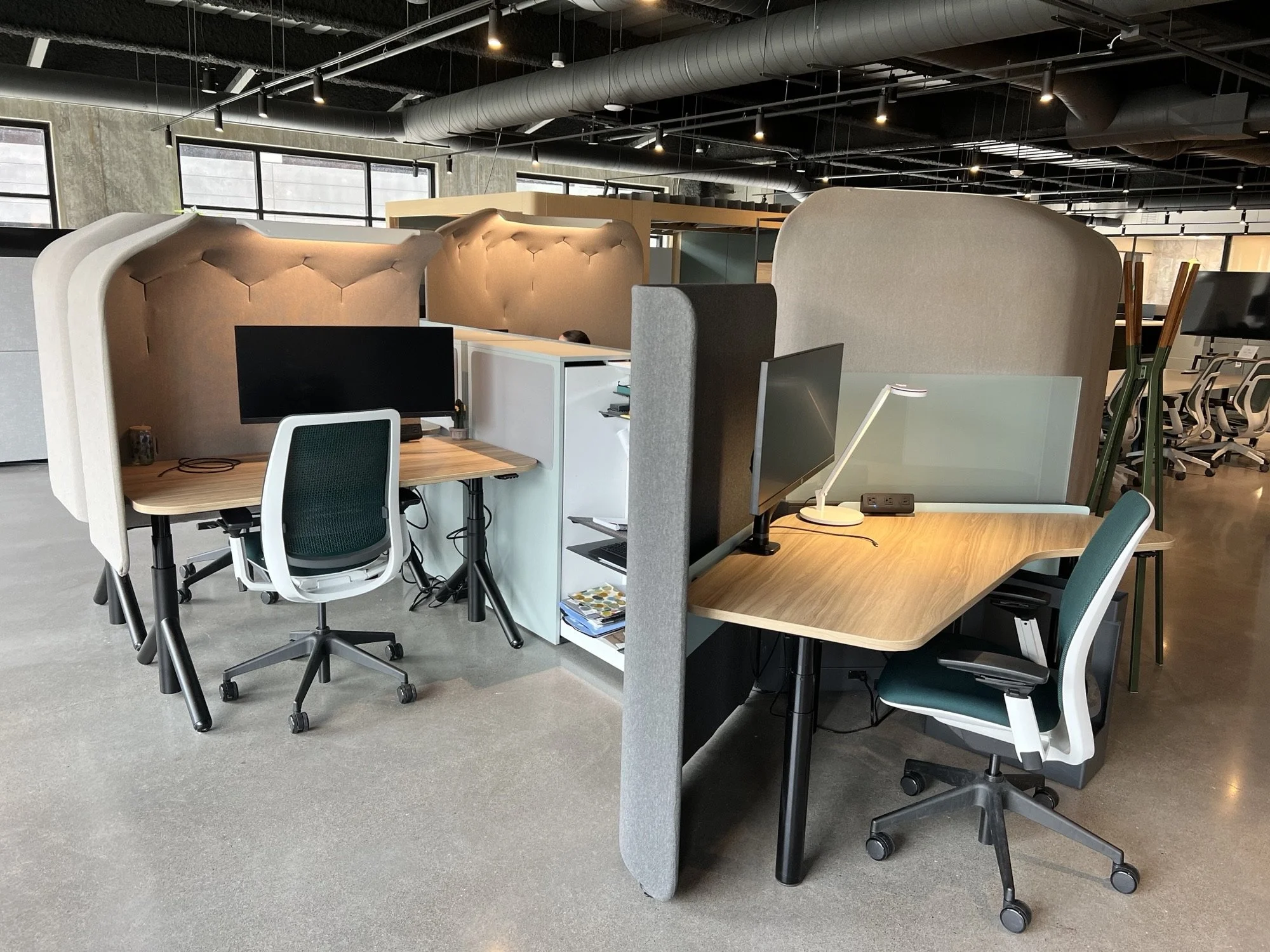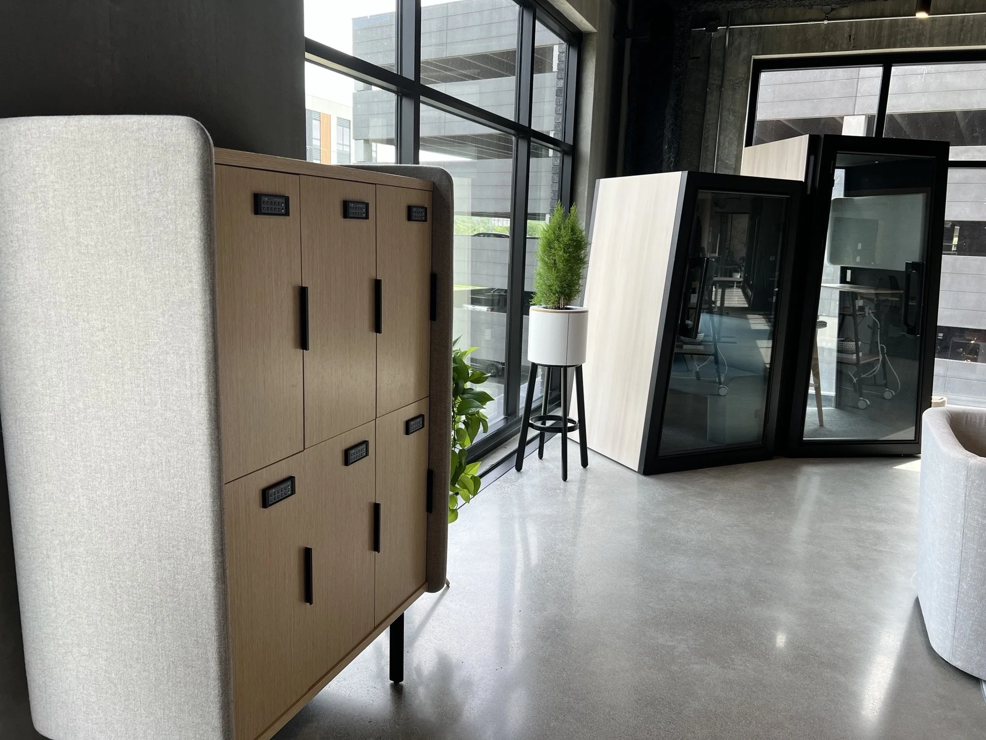 Grab-and-go lockers and sound-proof booths conveniently sit just steps from your workstation, offering quick storage and a quiet retreat whenever you need it.